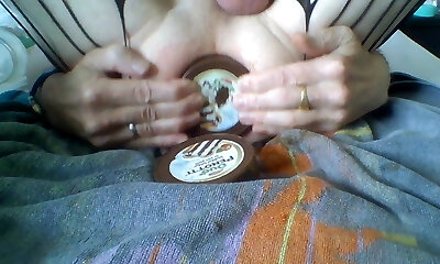 full video of spoon insertion in pipe and electric balls in coffee until cumshot