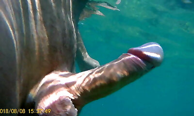 Wanking in the river and underwater cum